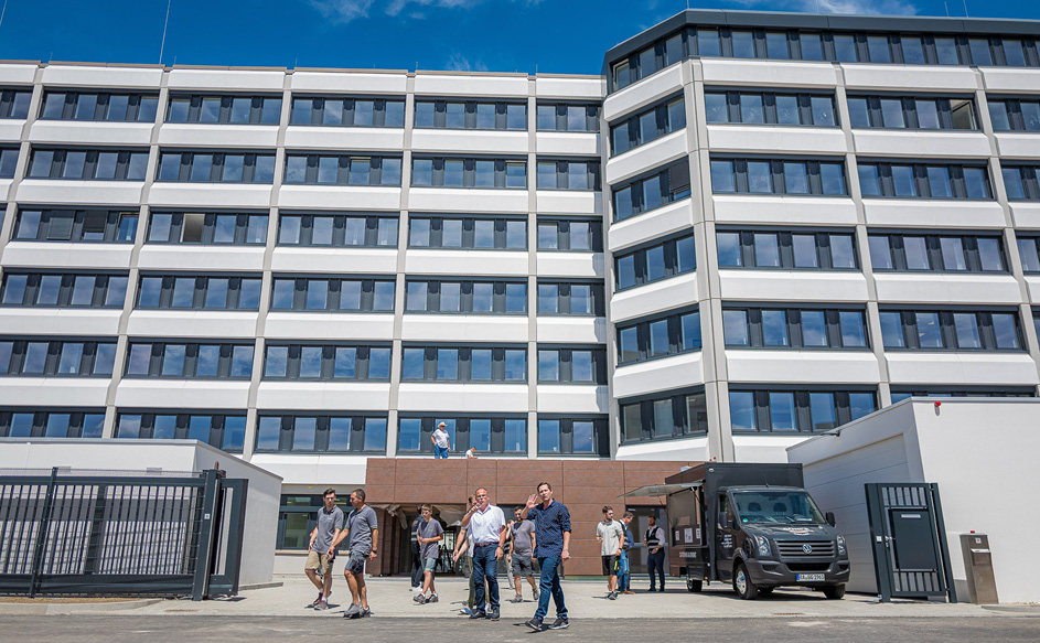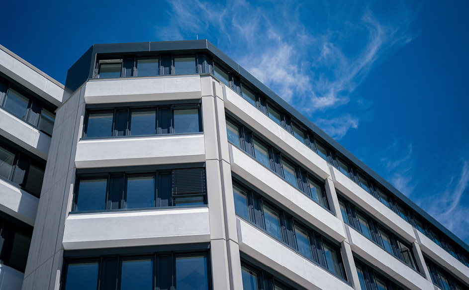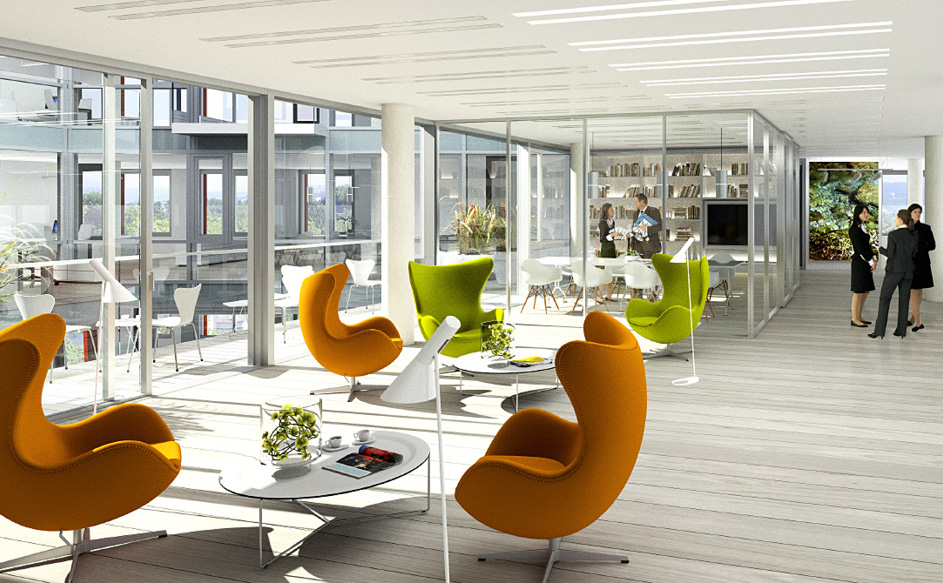 Die Architekten Geis & Brantner legten bei der Konzeption und Ausführung des innovativen Bürogebäudes besonderen Wert auf Maßnahmen, welche die Nutzerinnen und Nutzer sowohl mit ihrer räumlichen Umgebung als auch hinsichtlich ihrer Work-Life-Balance in Einklang bringen.